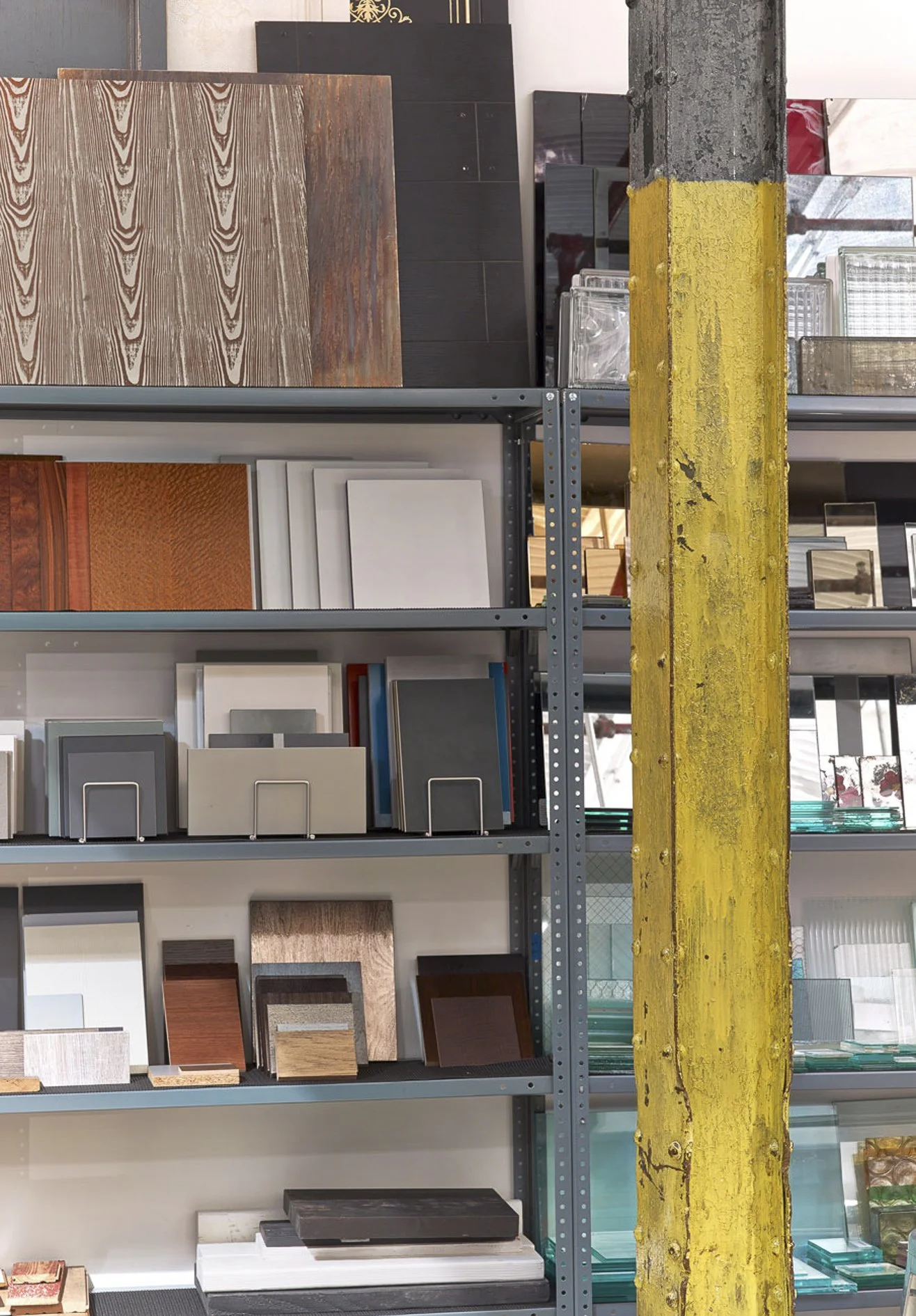 Interior design for MARKZEFF's office, a converted 1920s warehouse, which blends rustic architecture with vibrant colors and refined details for a modern, spacious workspace