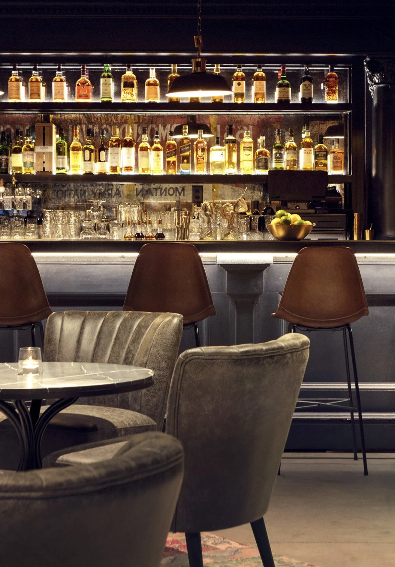 Interior design of the restaurant, speakeasy lounge, and ballroom for the Kimpton Armory Hotel